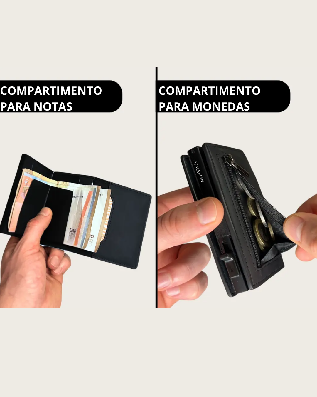 La Vitaleman Wallet 3.0 es la única cartera del mercado que es minimalista y, al mismo tiempo, tiene espacio suficiente para todos tus objetos importantes.
