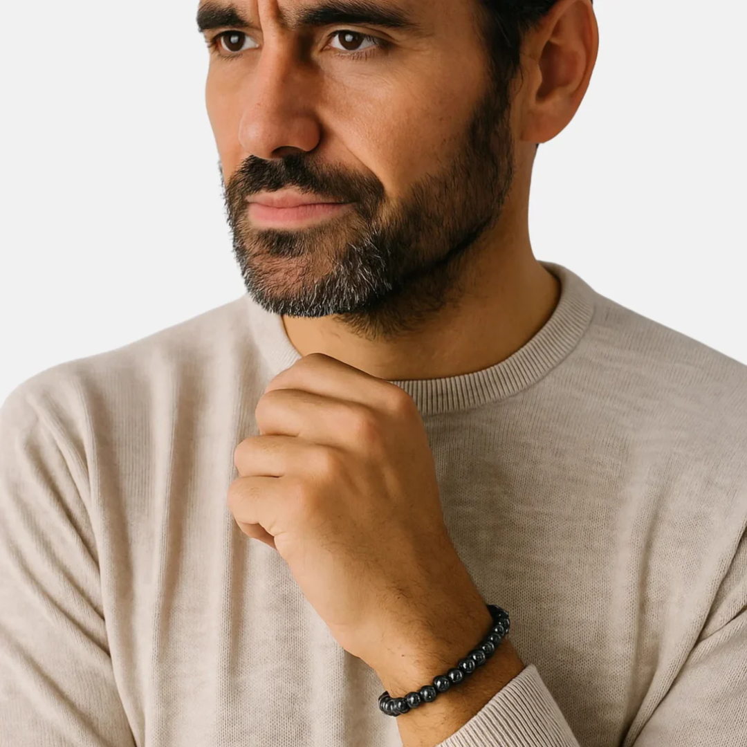Bransoletka VITALEMAN kanalizuje starożytną moc hematytu, kamienia magnetycznego, który wojownicy starożytności czcili jako źródło siły i stabilności.