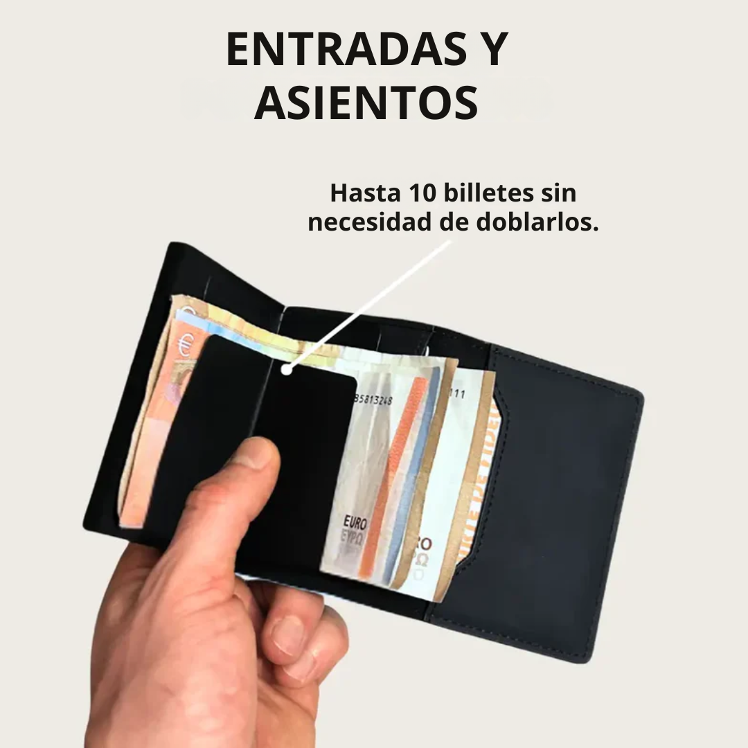 - 4 tarjetas en los bolsillos internos - Bolsillo para billetes (hasta 10 billetes)