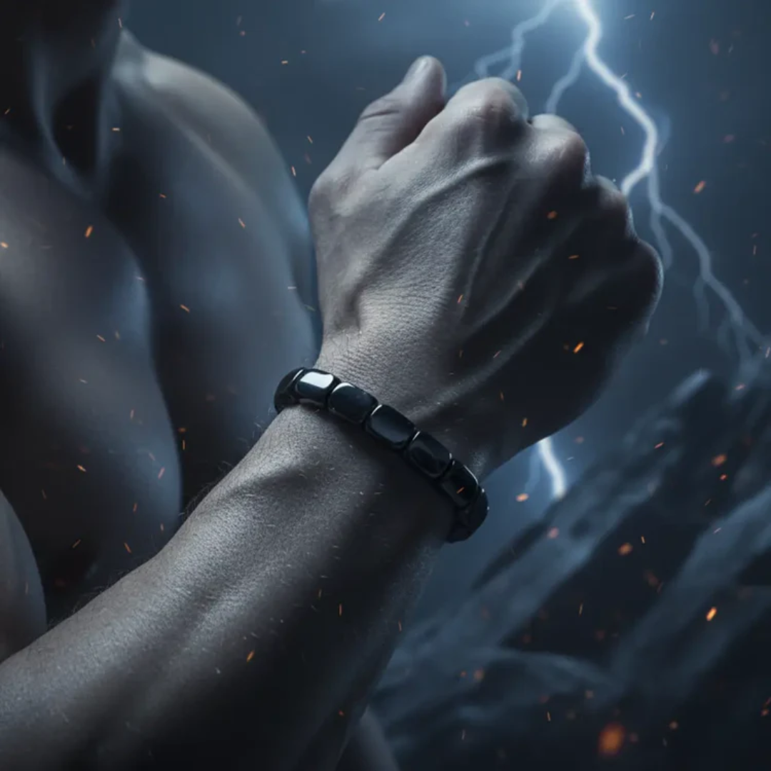 Bransoletka VITALEMAN kanalizuje starożytną moc hematytu, kamienia magnetycznego, który wojownicy starożytności czcili jako źródło siły i stabilności.