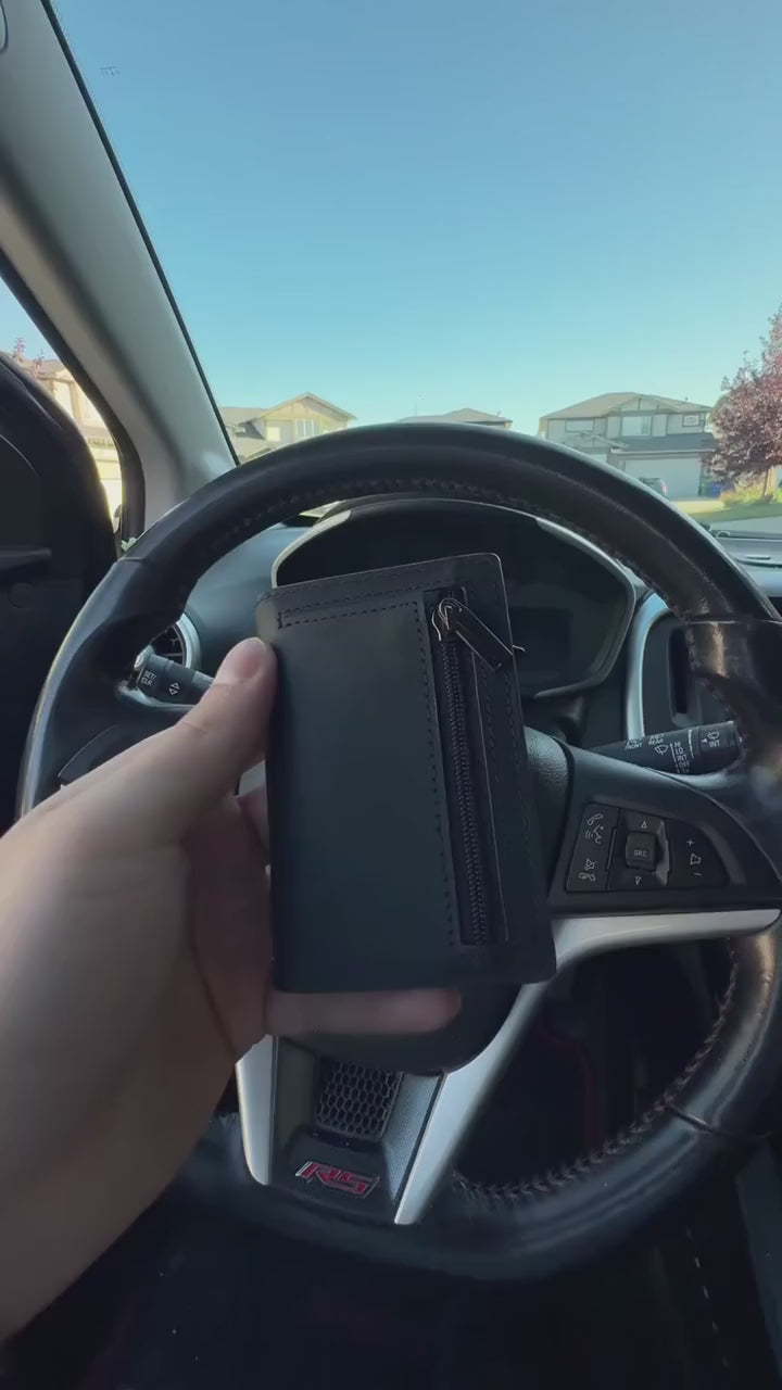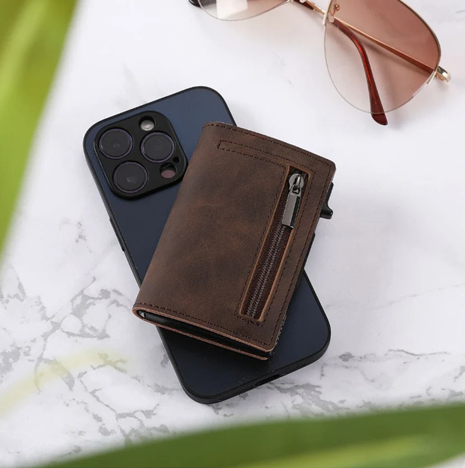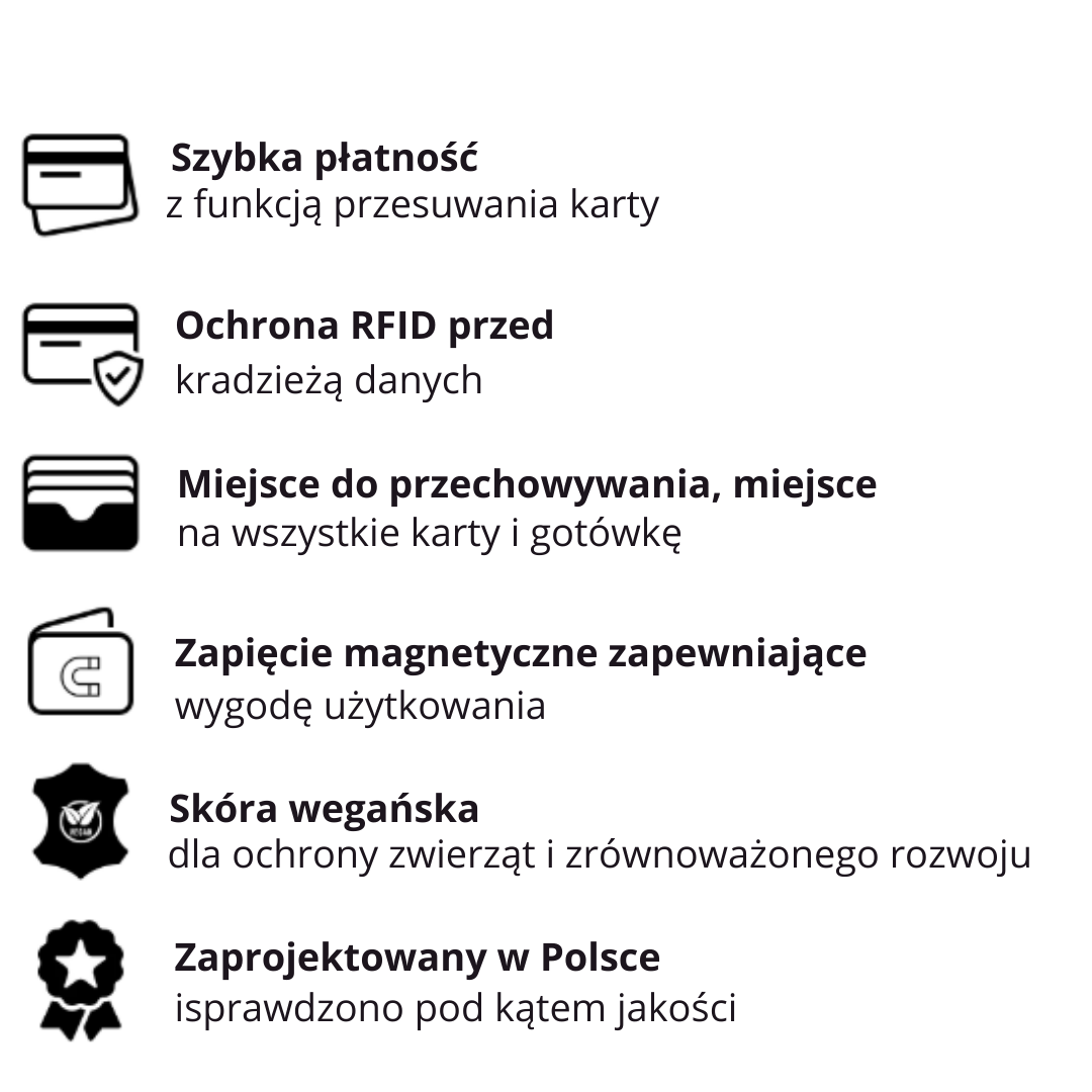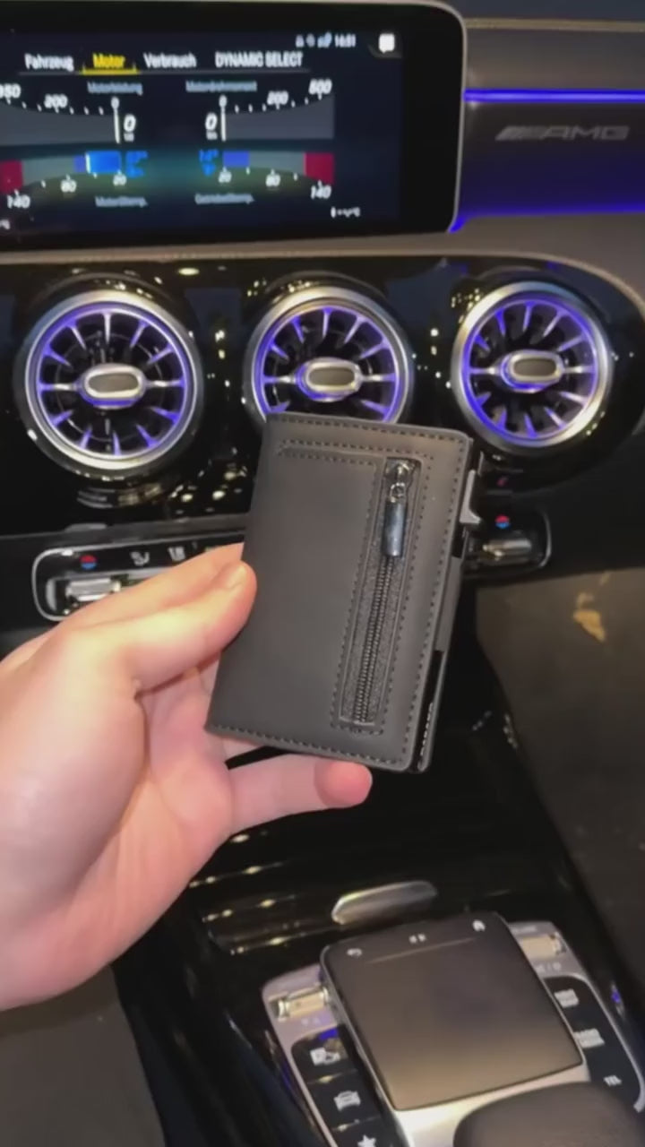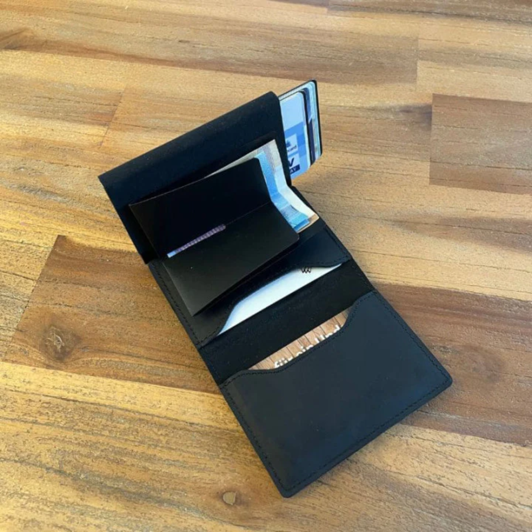 Dzięki naszej inteligentnej funkcji przesuwania wszystkie karty pojawiają się po jednym kliknięciu, bez ryzyka wypadnięcia. Koniec z niekończącym się przeszukiwaniem portfela lub problemami przy kasie. Jednym płynnym ruchem karty są uporządkowane i gotowe do użycia.
